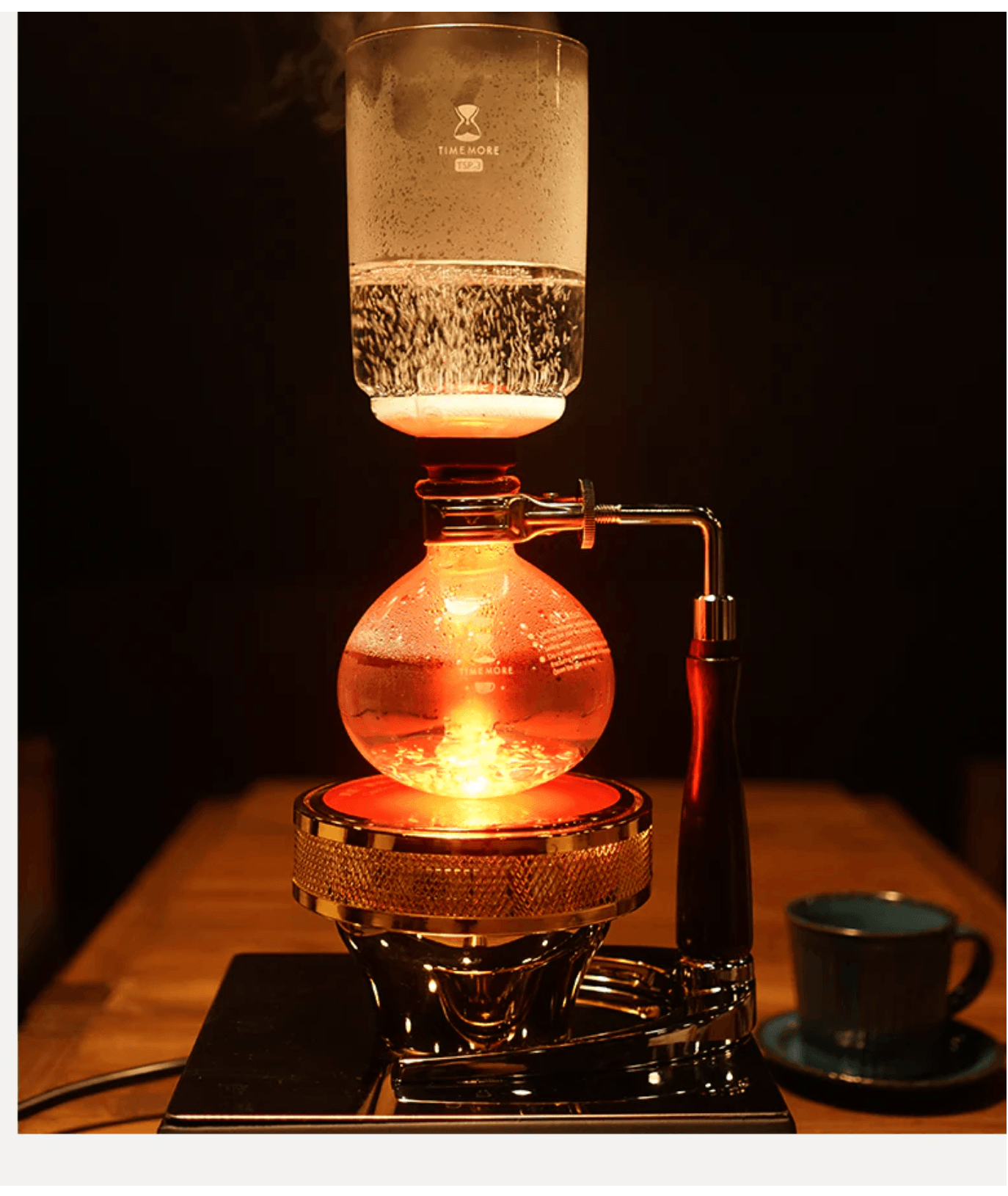 Timemore has created this work of art with design and elegance in mind. The wooden handle is a reflection of their hourglass logo. The handle is further away from the hot glass than most siphons (1.5 cm between the fingers and the lower bowl) to prevent accidental burns. Crystal clear borosilicate glass paint that is highly heat resistant creates a sense of calm that nothing dangerous can happen.